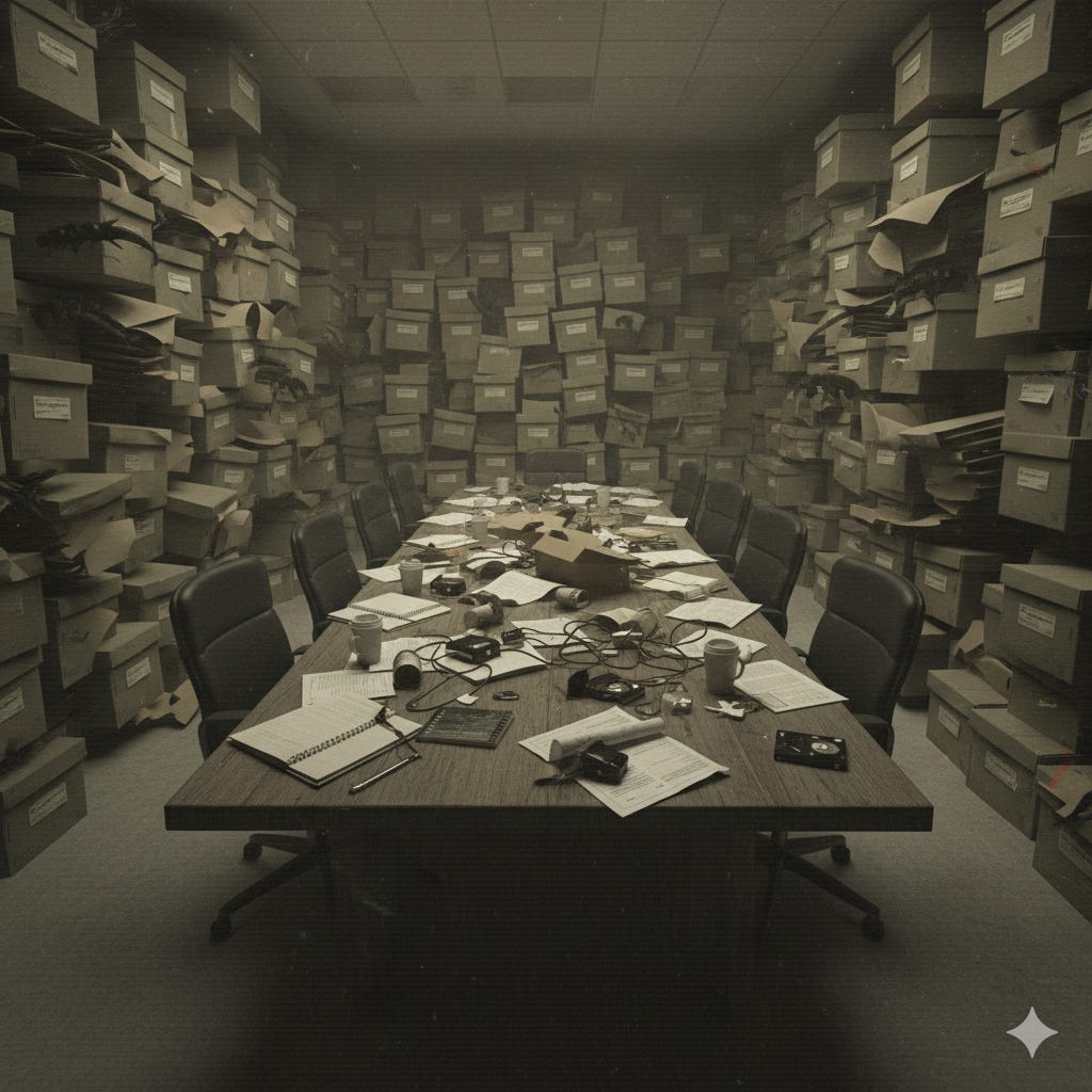 Yet, even after running my finger over the top box’s beaten sides, it still felt far away. The sun-scratched U.S. Space Force insignia, peeled chain of custody stickers, fingertip sweat smears— so many hands had held the boxes without understanding why they existed at all.